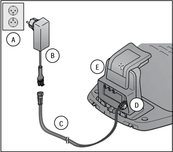 - Is the low voltage cable (C) free from damage? Check that there is no visible damage along the low voltage cable and on its ends.