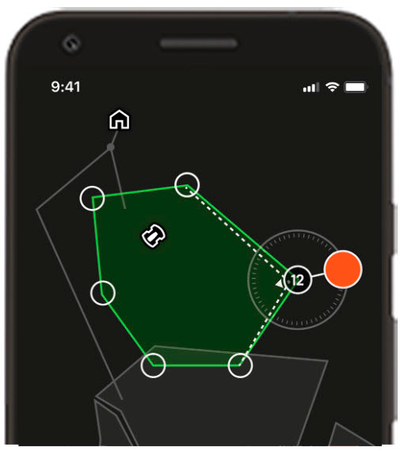 - Utilisez la fonction appDrive pour diriger le robot tondeuse dans le sens contraire des aiguilles d'une montre sur la pelouse afin de créer une zone d'exclusion.