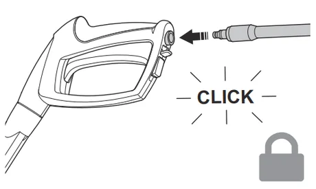 - Insérez le raccord de la lance de pulvérisation dans la poignée du pistolet de pulvérisation.
