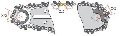 U řetězů X-CUT je rozteč vyražena na vodicím článku.