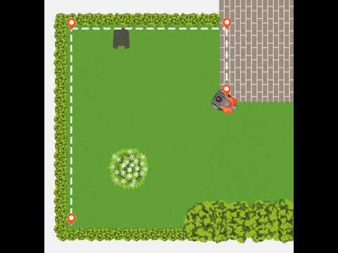 Vaadake seda animatsiooni, et näha, kuidas teepunktid töötavad. Juhite rakenduses appDrive’i abil niidukit päripäeva mööda muru ja asetate punktid tööala loomiseks ning seejärel vastupäeva ümber lillepeenra, et luua väljajääv piirkond. Üksikasjalikud juhised on toodud allpool.