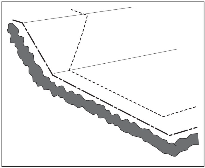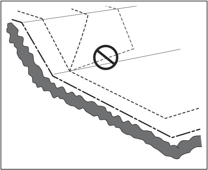 - Rinteissä olevat esteet: Leikkurin on käännyttävä väistääkseen puiden ja kivikkoryhmien kaltaiset esteet. Jyrkissä rinteissä tämä lisää liukastumisriskiä erityisesti märissä olosuhteissa. Se saattaa myös kuluttaa nurmikkoa. Epäsäännöllinen leikkuukuvio voi ratkaista nämä ongelmat. Jos ongelma jatkuu, jätä kyseinen alue työalueen ulkopuolelle luomalla poissuljettu alue.