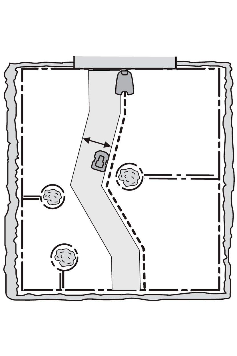 När du följer begränsnings- eller guidekabeln till och från laddstationen eller genom en passage körs din Automower®-robotgräsklippare med ett varierande avstånd från kabeln för att minska risken för att bilda spår. Ytan bredvid kabeln som robotgräsklipparen använder kallas för en korridor.