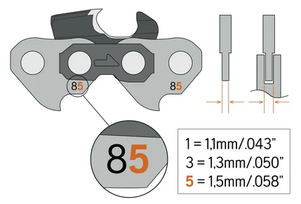 Be to, žingsnis dažai įspaudžiamas ant varančiosios žvaigždutės arba grandininio pjūklo sankabos būgnelio.