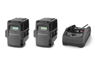 Kit från Husqvarna med två BLi200-batterier och en 40-C80-laddare.