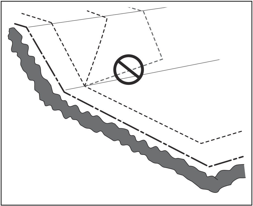 - Не прокладайте напрямний дріт паралельно схилу, як показано на рисунку. Це може призвести до пошкодження трави.