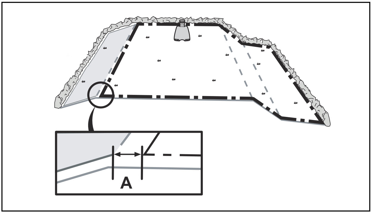 - Відстань між нижньою частиною схилу й граничним дротом має становити 1,5 м / 5 футів.