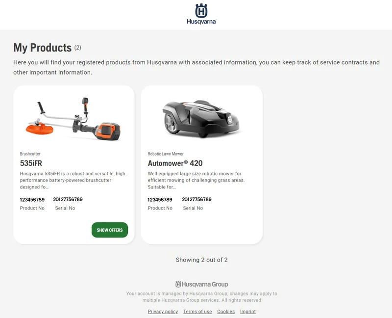 - Можливість зареєструвати всі ваші пристрої Husqvarna в одному місці.