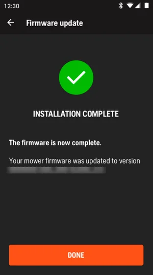 Якщо встановлення не вдалося, перезавантажте косарку. Під’єднайтеся до виробу за допомогою Bluetooth і перевірте, яку версію вбудованого програмного забезпечення встановлено в Automower® Connect, у розділі More (Більше) > My mowers (Мої косарки) > Mower Details (Дані косарки)> Software version (Версія програмного забезпечення). Якщо встановлено нову версію, усе гаразд. Якщо цього не відбулося, перезапустіть установлення.