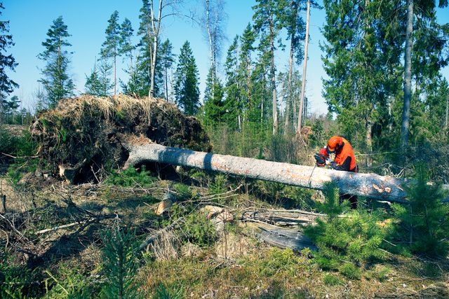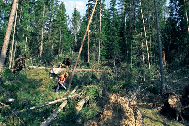Processing of storm-felled forest