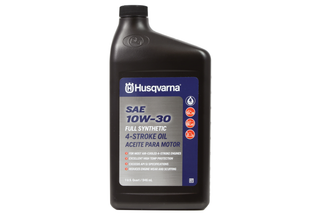 Husqvarna's full synthetic 10W-30 4-stroke engine oil is a premium oil blend designed for tough, commercial use. This lawn mower oil is ideal for tractors, commercial zero-turn mowers and commercial walk-behind mowers. Designed for most air cooled 4-stroke engines, this oil offers excellent protection in high temperatures, as well as reduced engine wear and scuffing.